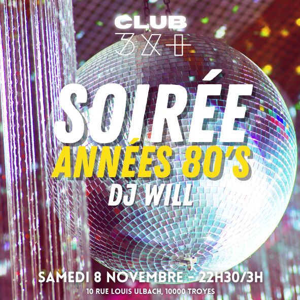 Soirée Années 80 par DJ Will // Club 3x+ https://www.letroyesfoisplus.fr/events/soiree-annees-80-dj-will-4/ |