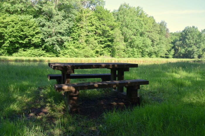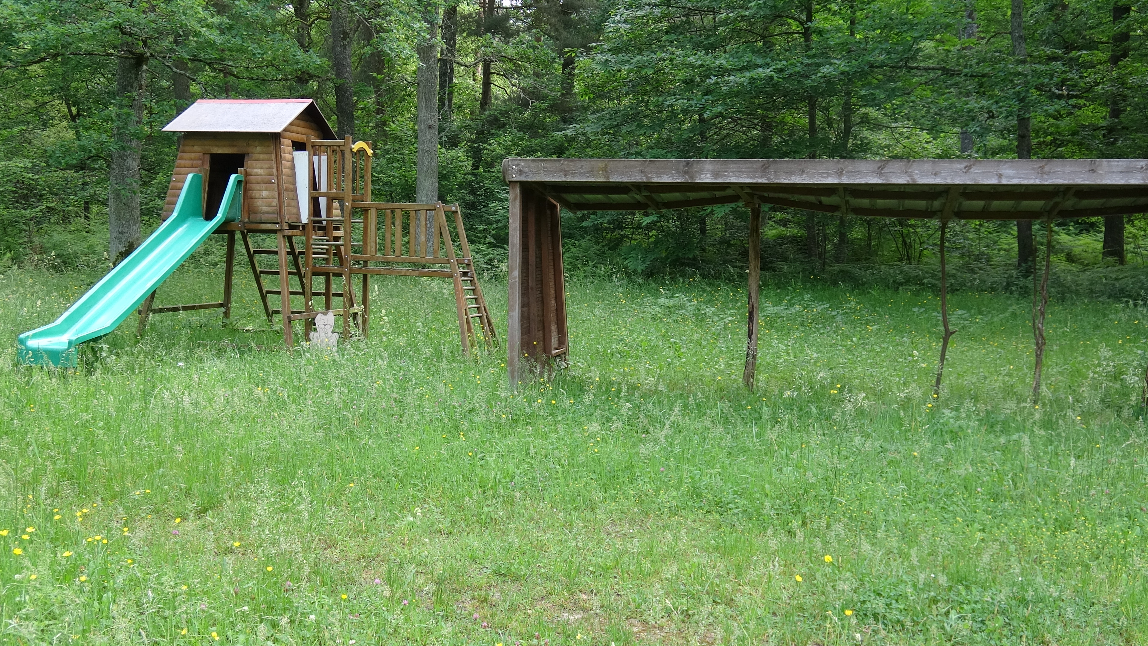 5 tables : emplacement ombragé, parking à proximité de l'étang et jeux de l’ours pour les enfants.