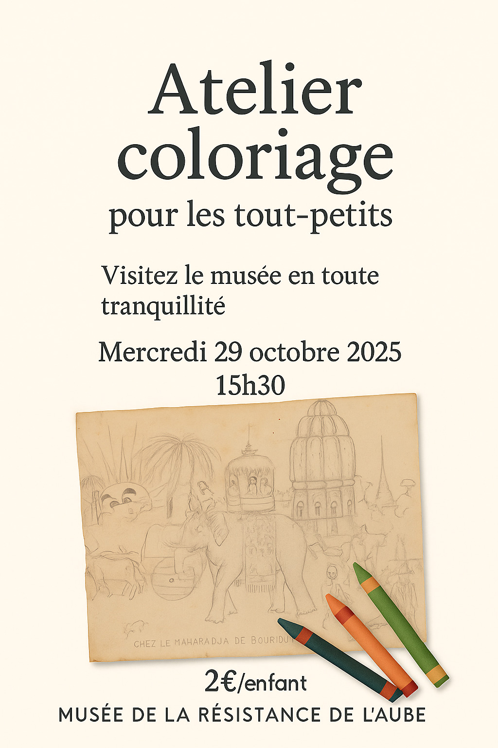 Le Musée de la Résistance de l’Aube propose aux parents de jeunes enfants n’étant pas en âge de comprendre le musée, de prendre en charge les petits pour un atelier de coloriage autour des dessins d’un résistant prisonnier.