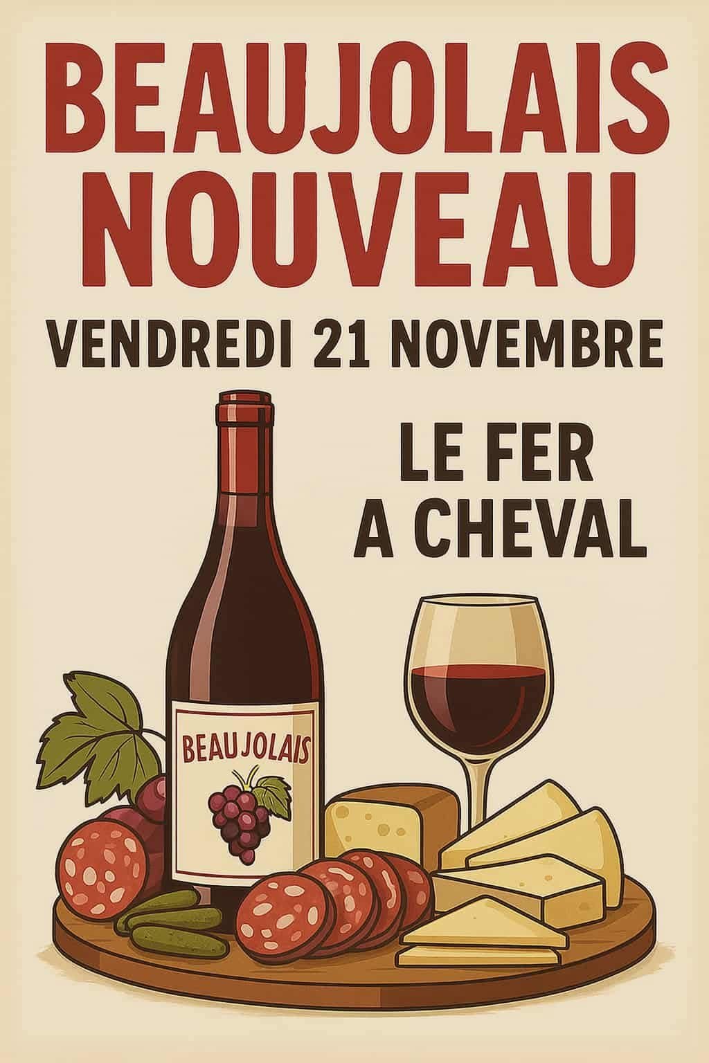 Le bar le Fer à Cheval vous convie à sa soirée beaujolais le Vendredi 21 Novembre à partir de 18h.