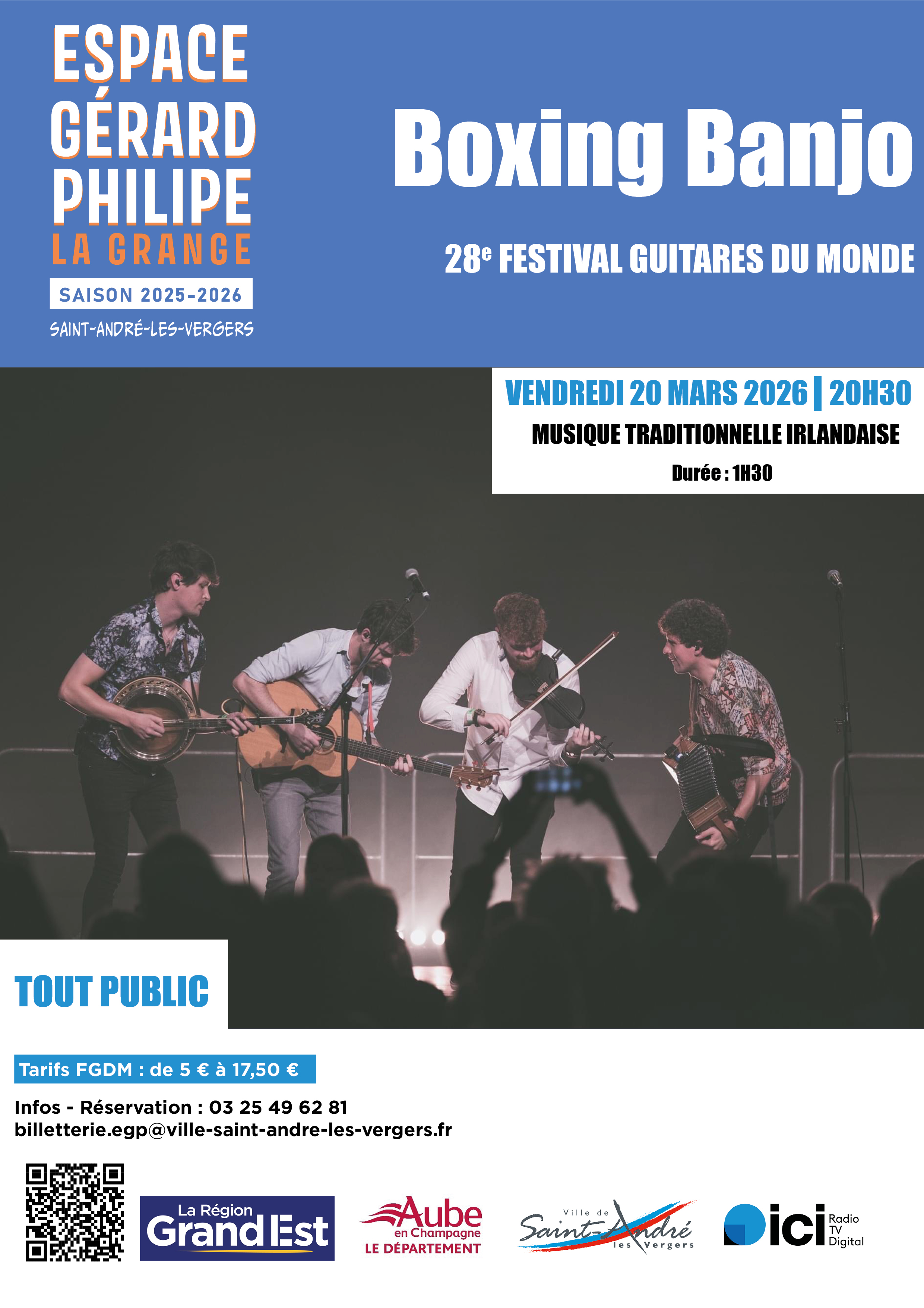 BOXING BANJO Musique traditionnelle irlandaise Tout public Durée : 1h30 Dans le cadre du Festival Guitares du Monde