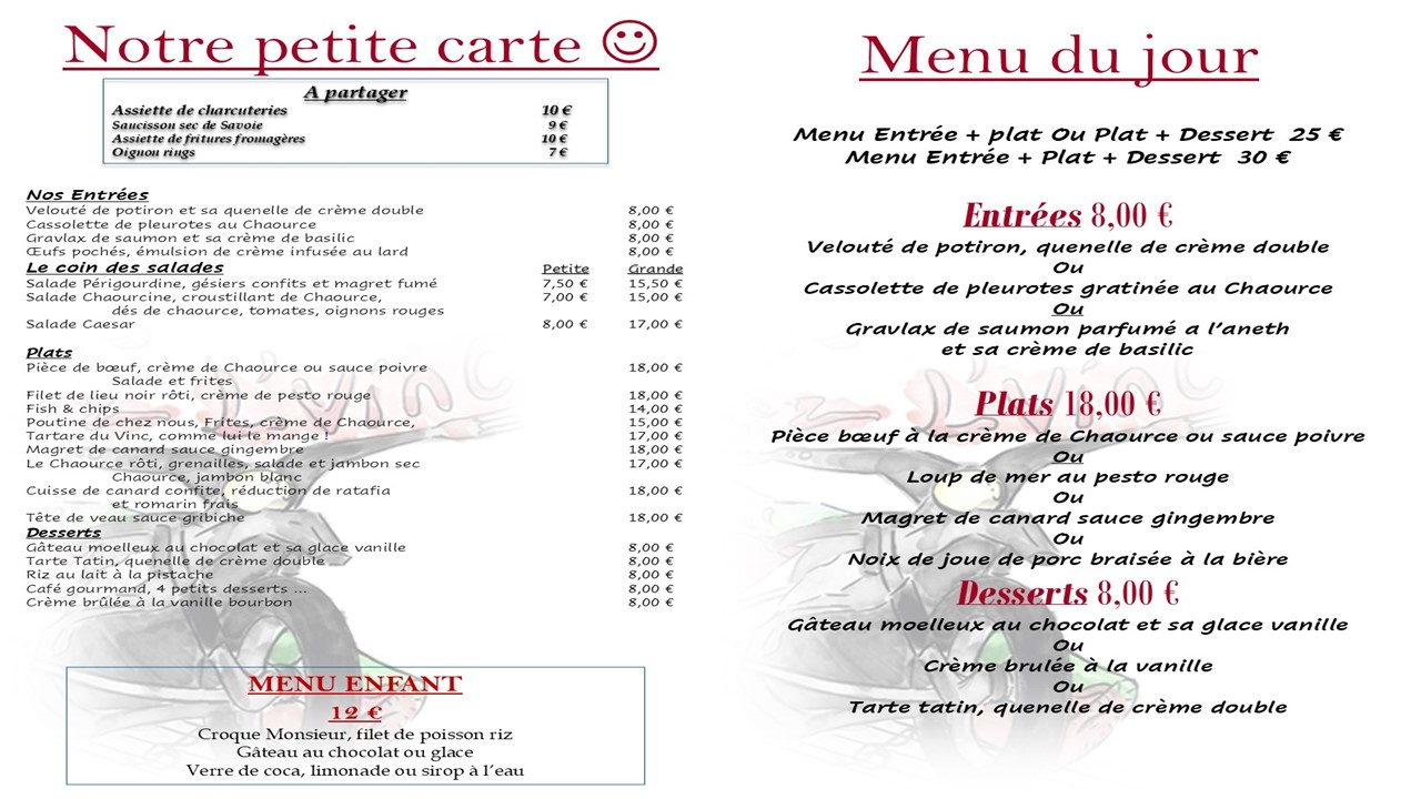 | Menu enfant | 12 € |