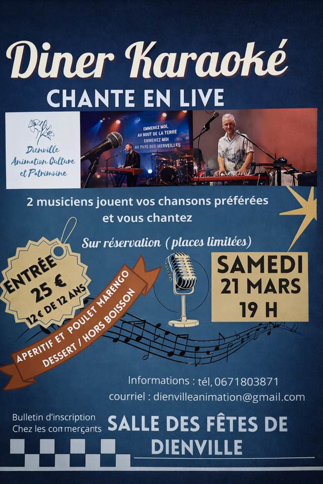 L'association Dienville Animation Culture et Patrimoine organise son diner Karaoké avec "chante en live".