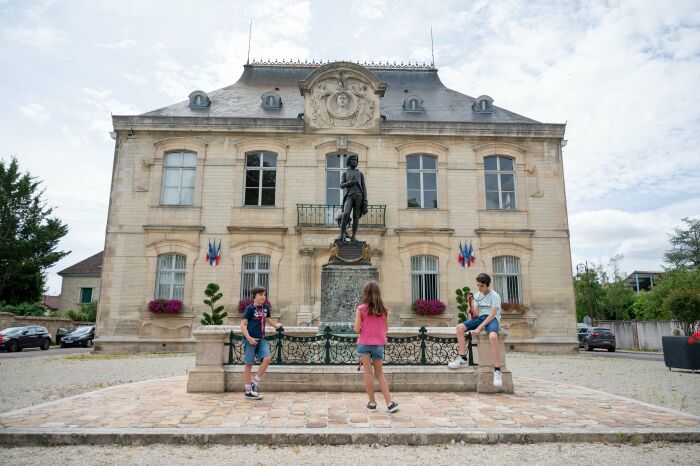 Napoléon 1er rédige son testament en avril 1821 et lègue 1 200 000 francs or à la ville de Brienne. Sous Napoléon III, en 1856, ses dispositions testamentaires sont exécutées. Bénéficiant finalement de 400 000 francs or, cet argent sera utilisé pour reconstruire en partie la ville détruite après les combats de 1814, notamment l'église et pour édifier l'Hôtel de Ville et la statue représentant Bonaparte, qui trône sur la place de l'Hôtel de Ville. Le fronton de l'édifice, arbore en lieu et place de la devise républicaine française, le portrait de Napoléon 1er, représenté à la façon des empereurs romains qu'il admirait tant, coiffé d'une couronne de lauriers, entourés de deux Victoires et surmonté de l'aigle impérial.
