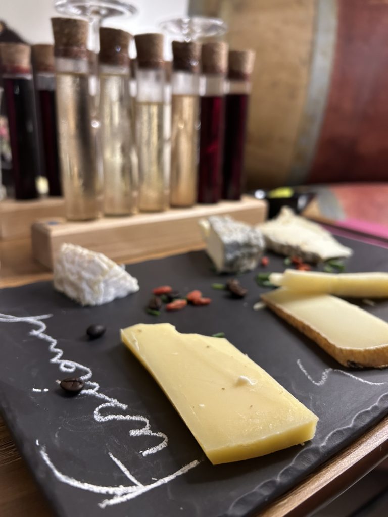 Le concept rend la dégustation ludique et accessible à tous : les vins sont servis en fioles, les fromages numérotés pour indiquer le sens de la dégustation, et chaque accord est accompagné d’une fiche explicative accessible via QR Code.