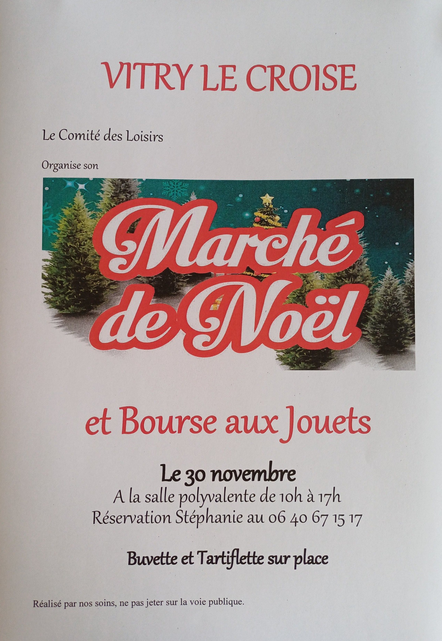Le Comité des loisirs de Vitry-le-Croisé organise son marché de Noël et sa bourse aux jouets le dimanche 30 novembre de 10h à 17h.
