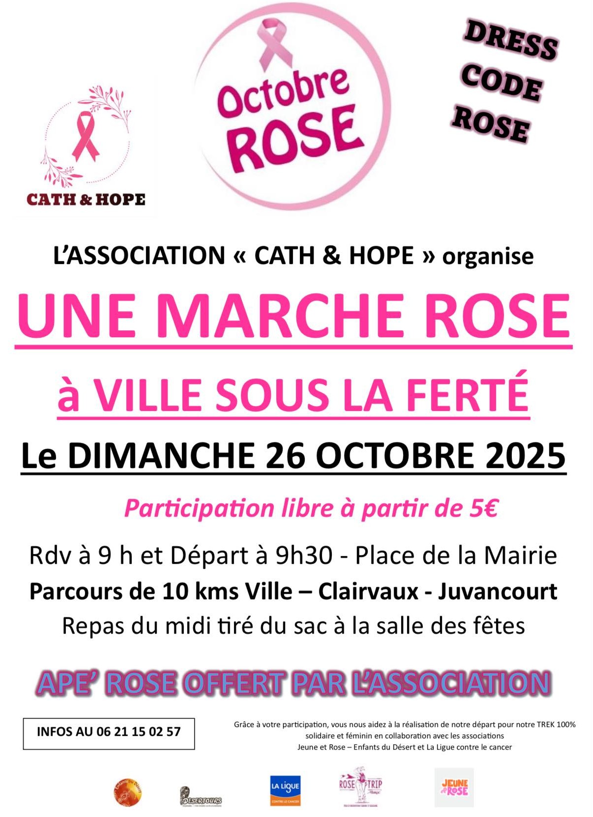 L'association Cath&Hope organise une marche rose le dimanche 26 octobre.