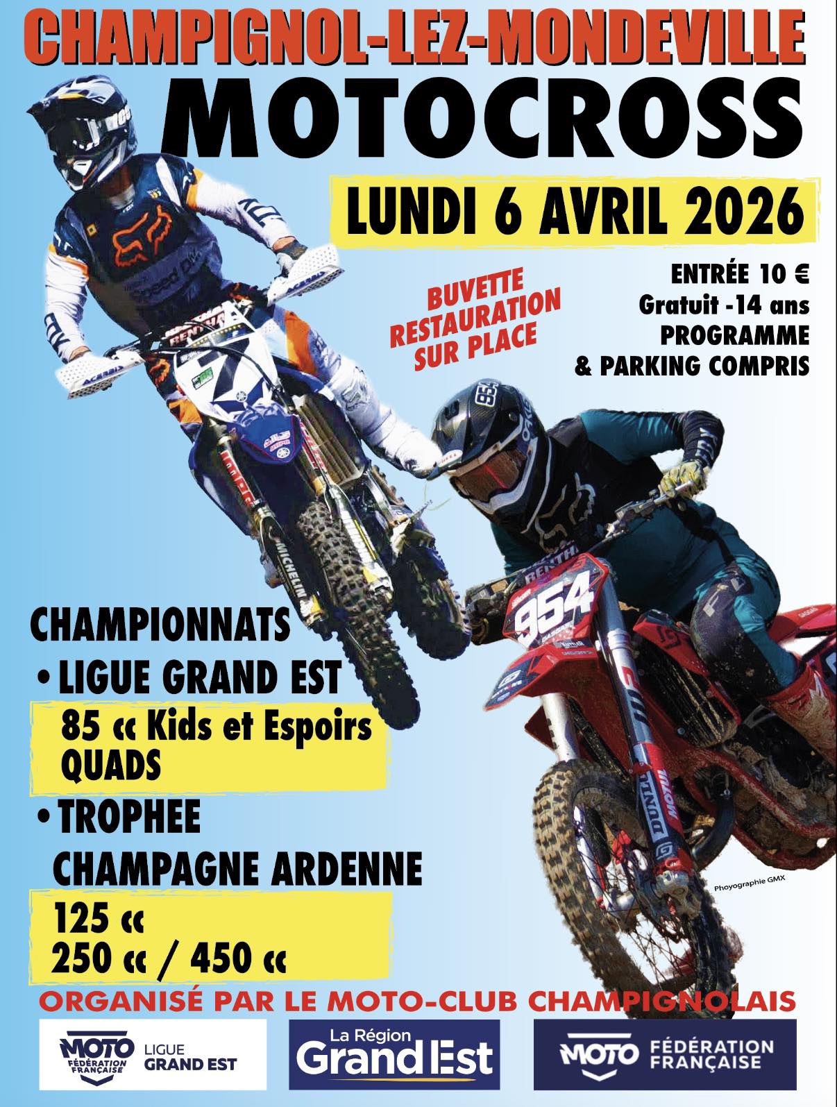 Le village de Champignol-lez-Mondeville et le moto club champignolais accueillent une épreuve de motocross le Lundi 6 Avril.