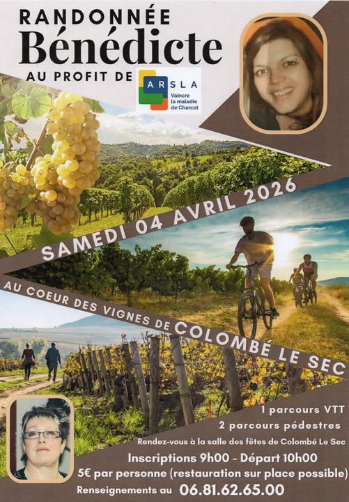 Randonnée Bénedicte au coeur des vignes de Colombé-le-Sec le Samedi 4 Avril, au profit de l'ARSLA.