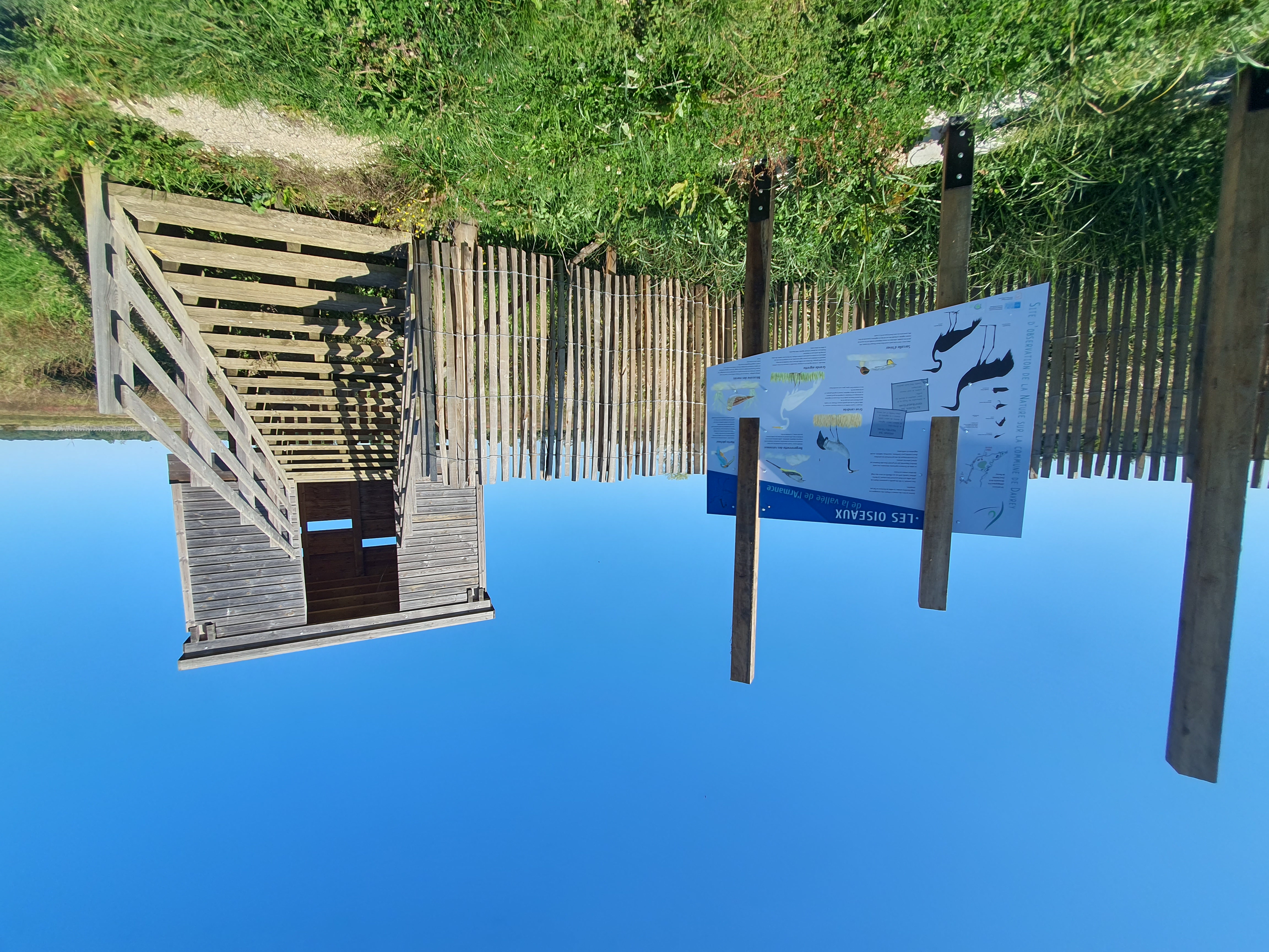 Deux observatoires ornithologiques permettant l'observation des oiseaux sur la platière ;