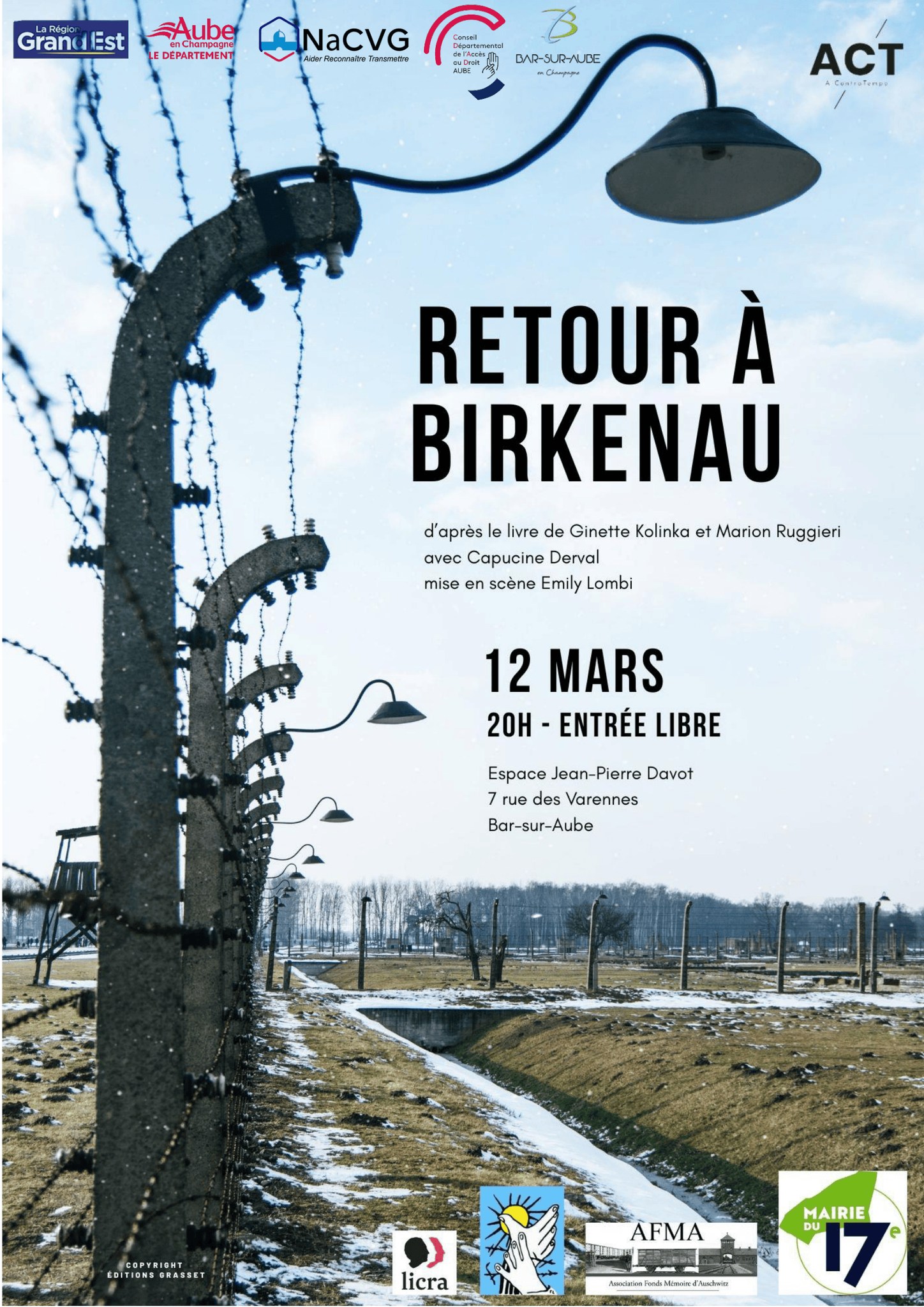 La compagnie A ContraTempo interprètera Retour à Birkenau le Jeudi 12 Mars à 20h.