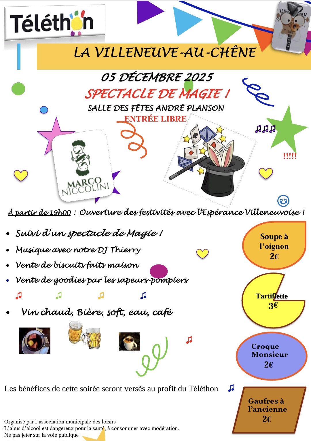 Pour le Téléthon, l'Association Municipale des Loisirs vous donne rendez-vous pour un spectacle unique. Place à la magie et venez découvrir des tours comme vous n'en avez jamais vu !