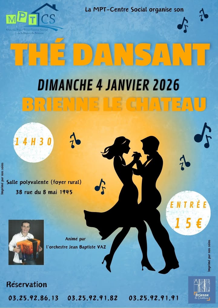 La Maison pour Tous de Brienne-le-Château vous convie à un thé dansant au sein du foyer rural. L'après-midi sera animée par le fameux Jean-Baptiste Vaz.