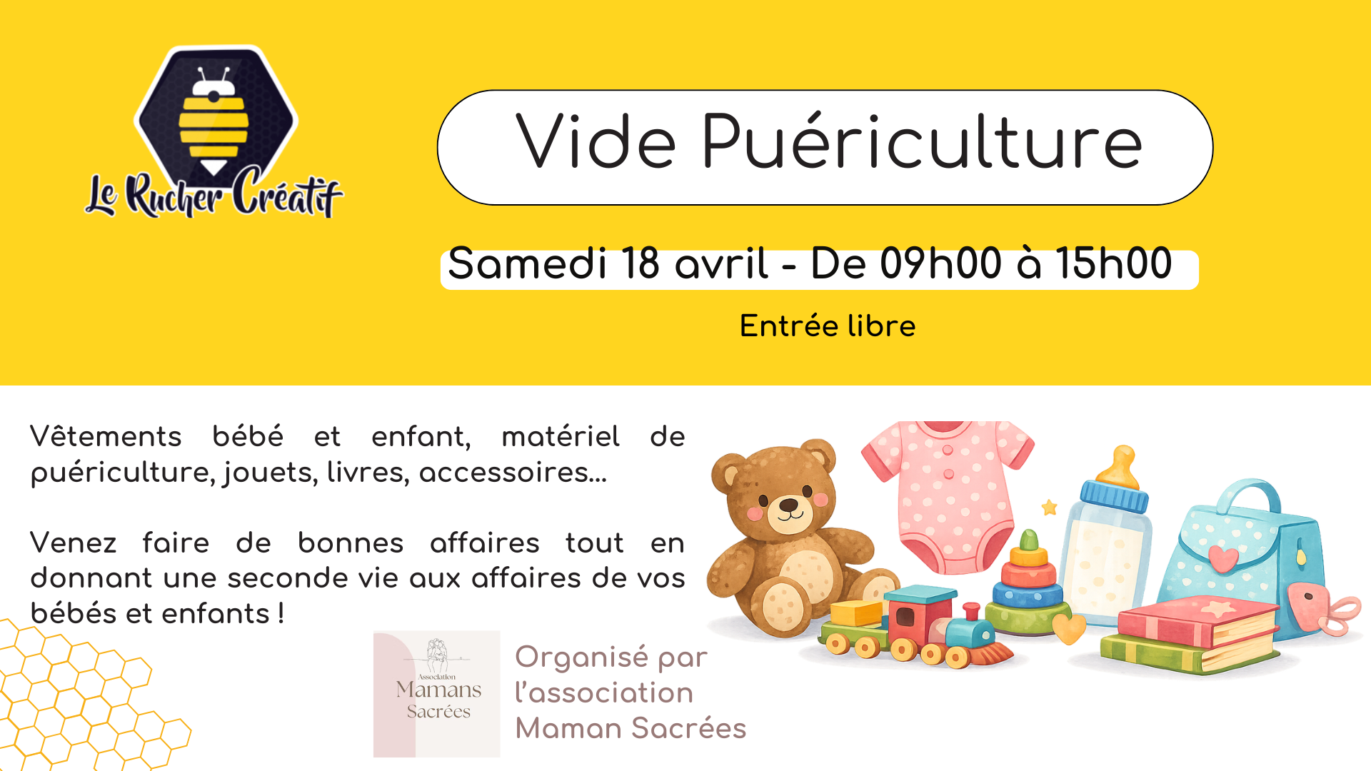 L'association Mamans Sacrées organise un vide Puériculture au Rucher Créatif !