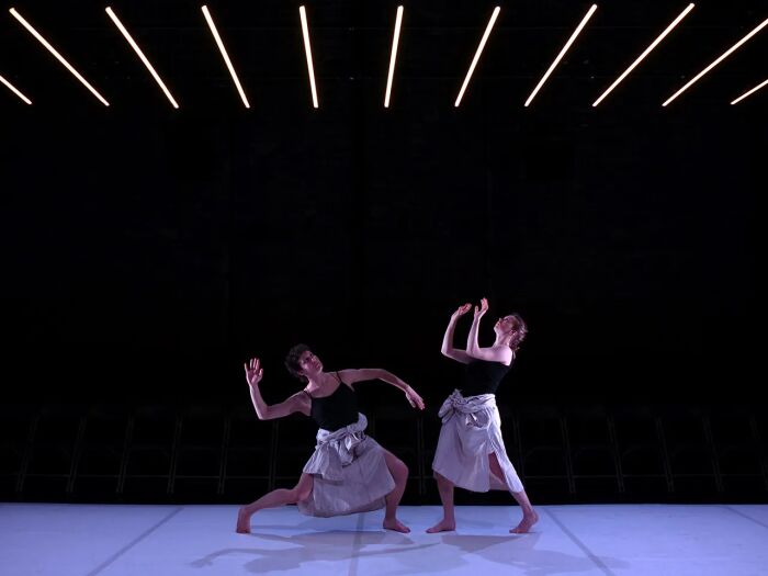 Avec cette pièce pour deux danseuses, Marine Mane imagine un dialogue physique en continu, tandis que la composition musicale, comme la bande originale d’un film, accompagne le mouvement.